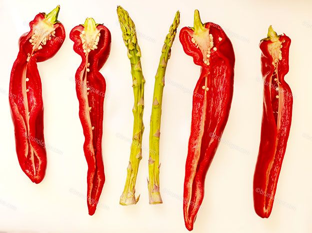 Piments, poivrons, pomme, main de bouddha, pâtes, morilles, truffes, poires, figues, topinambour, noix, citron caviar, ail noir oranges, concombre, riz doré, pistils de safran, poivres, fleurs de courgettes, citron, lime, pamplemousse, oeufs, carambole, pitaya, kiwano, betterave chioggia, raisins, endives.